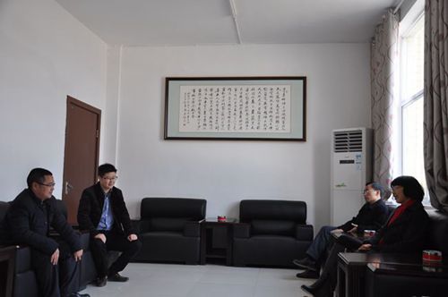 与朝阳寺镇党委书记孟奎(右二)座谈交流