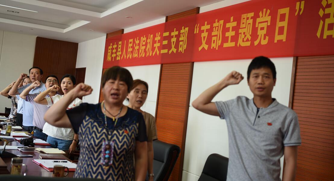随后,以支部为单位召开以“过好‘七一’政治生日,传达学习省第十一次党代会精神”为主题的支部主题党日活动。缴纳党费、重温入党誓词、诵读党章相关文件和重要讲话精神。